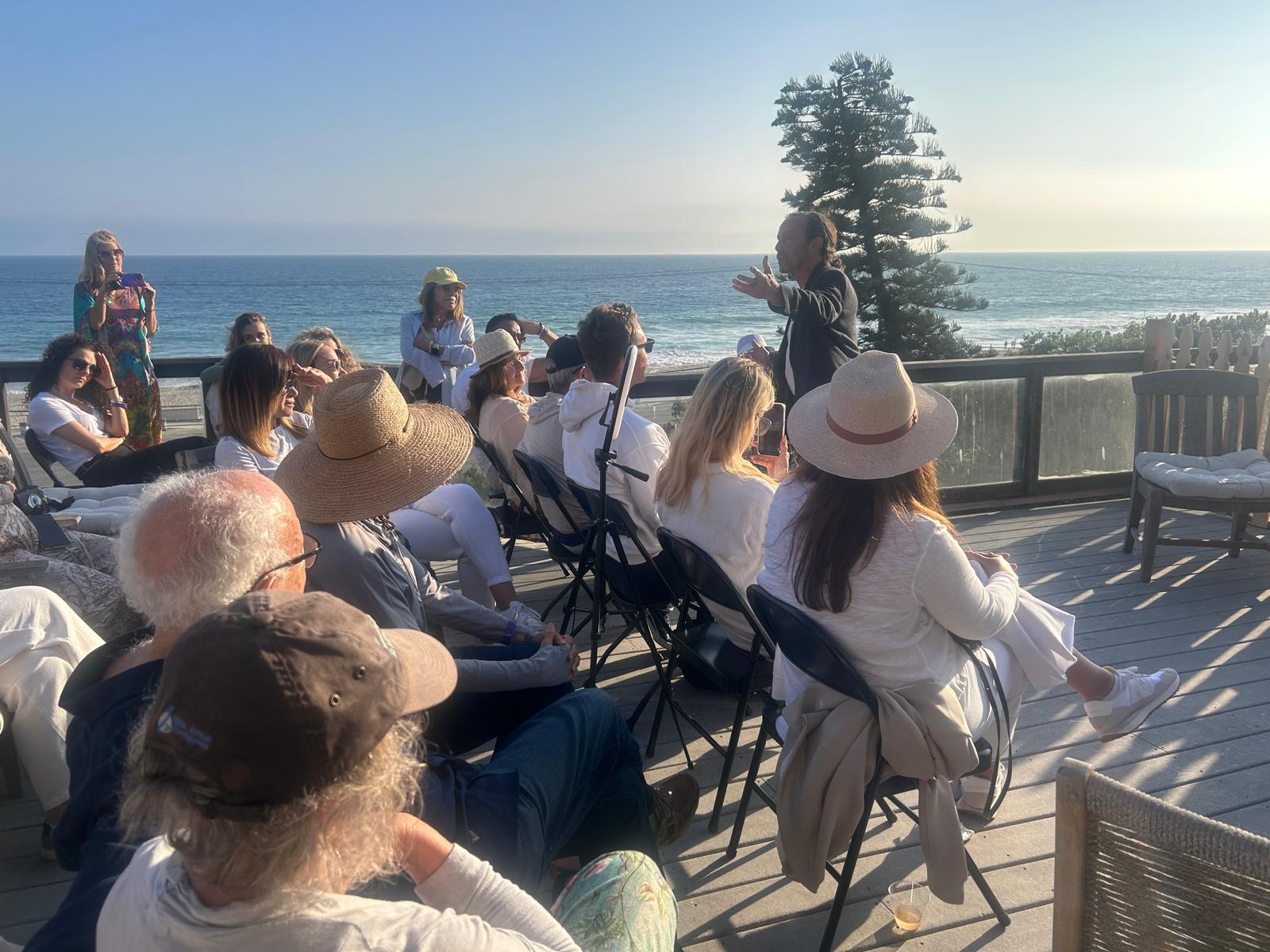 We host both limited-capacity in-person experiences in Malibu and online sessions you can join from anywhere (free or paid, depending on the event).